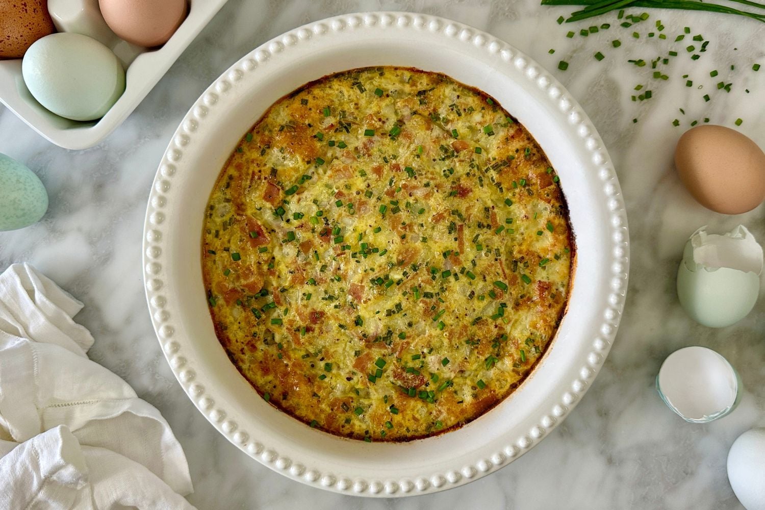 - 🥣 Key Ingredients: Eggs, cottage cheese, Swiss cheese, cooked ham, chives