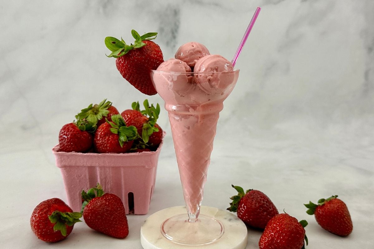 - Frozen Fruit Swaps: You can replace the strawberries with frozen cherries, raspberries, or mixed berries if preferred. Or, for a tropical flavor, try frozen mango or pineapple, or try our pineapple Dole Whip recipe! For another option, replace the strawberries with frozen peaches, or make our dairy-free peaches and cream ice cream.