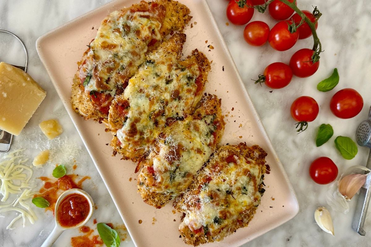 This healthy baked chicken parmesan recipe is packed with flavor and easy to make! This lighter Italian classic is a family treasure, and now it’s yours.