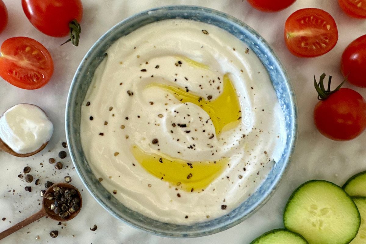 I love this simple, delicious recipe and the fact that it’s packed with protein. I whip it up as a topping for any kind of cooked potatoes, or steamed vegetables. I love it as a dip for chips, bread, and crackers! Oh! I can’t forget raw veggies too! So easy, so good!